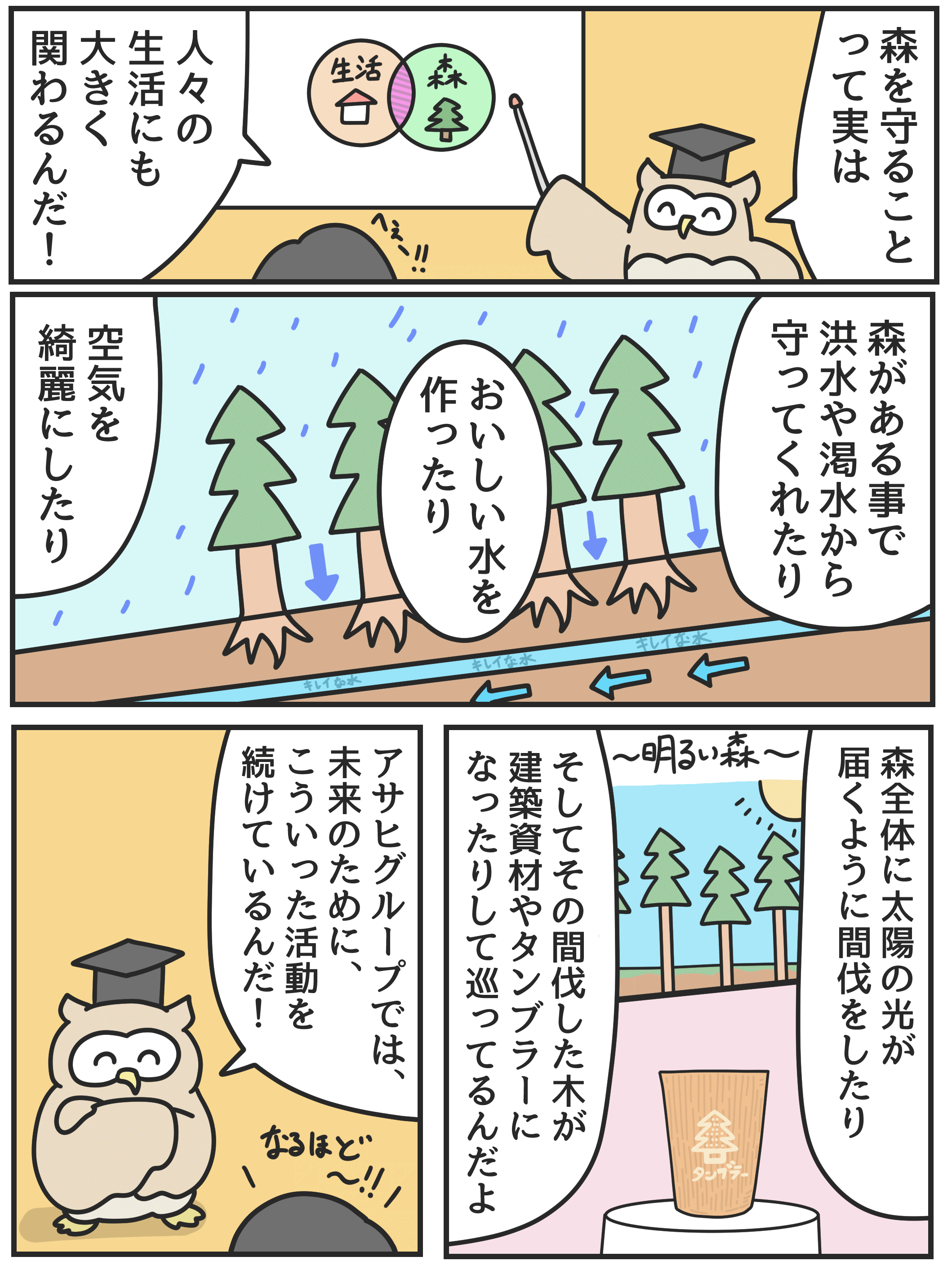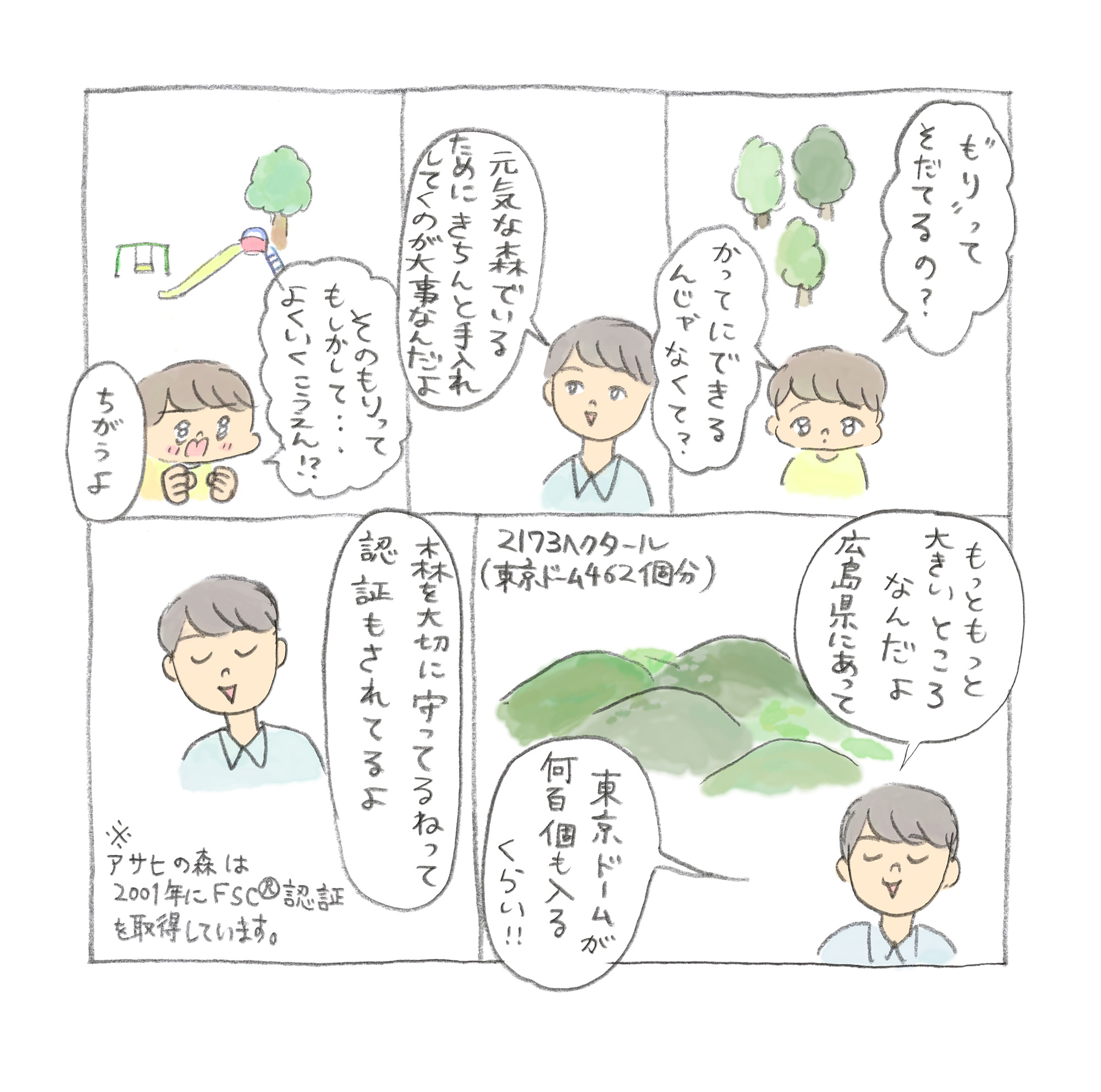 アサヒグループは80年以上に渡り、社員の手で森を守り続けています。アサヒグループの社有林「アサヒの森」は、広島県庄原市と三次市の大小15ヵ所に点在しています。その総面積は2,173ヘクタール。これは、東京都の中央区と千代田区を合わせたくらいの広さで、東京ドーム462個分に相当します。※森林管理面積は2,576ha