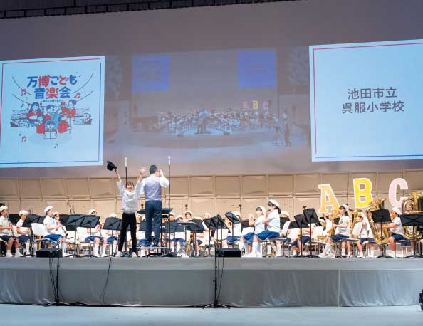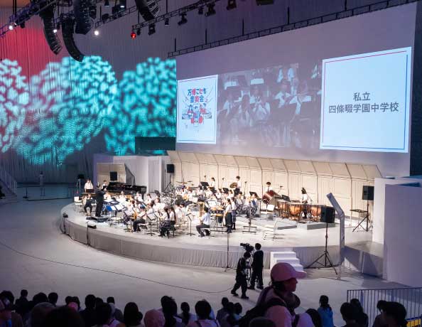 The performers were nine groups of students from 12 elementary and junior high schools in Osaka Prefecture. The students, mainly from schools that participated in the School Outreach Class, put on a variety of musical performances, including a brass band and a chorus.